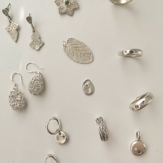 We werken met zilverklei, een bijzonder en gerecyled materiaal uit Japan, we branden de klei weg waardoor 999 puur zilver overblijft. Onder begeleiding van een gecertificeerd zilverklei-instructeur leer je hoe je dit materiaal omtovert tot een blijvend sieraad. Je bepaalt zelf je ontwerp: strak en modern, speels en organisch, met een stempel, reliëf of tekst. Alles mag, er is veel mogelijk en je wordt geholpen om jouw idee om te zetten in een blijvende herinnering.