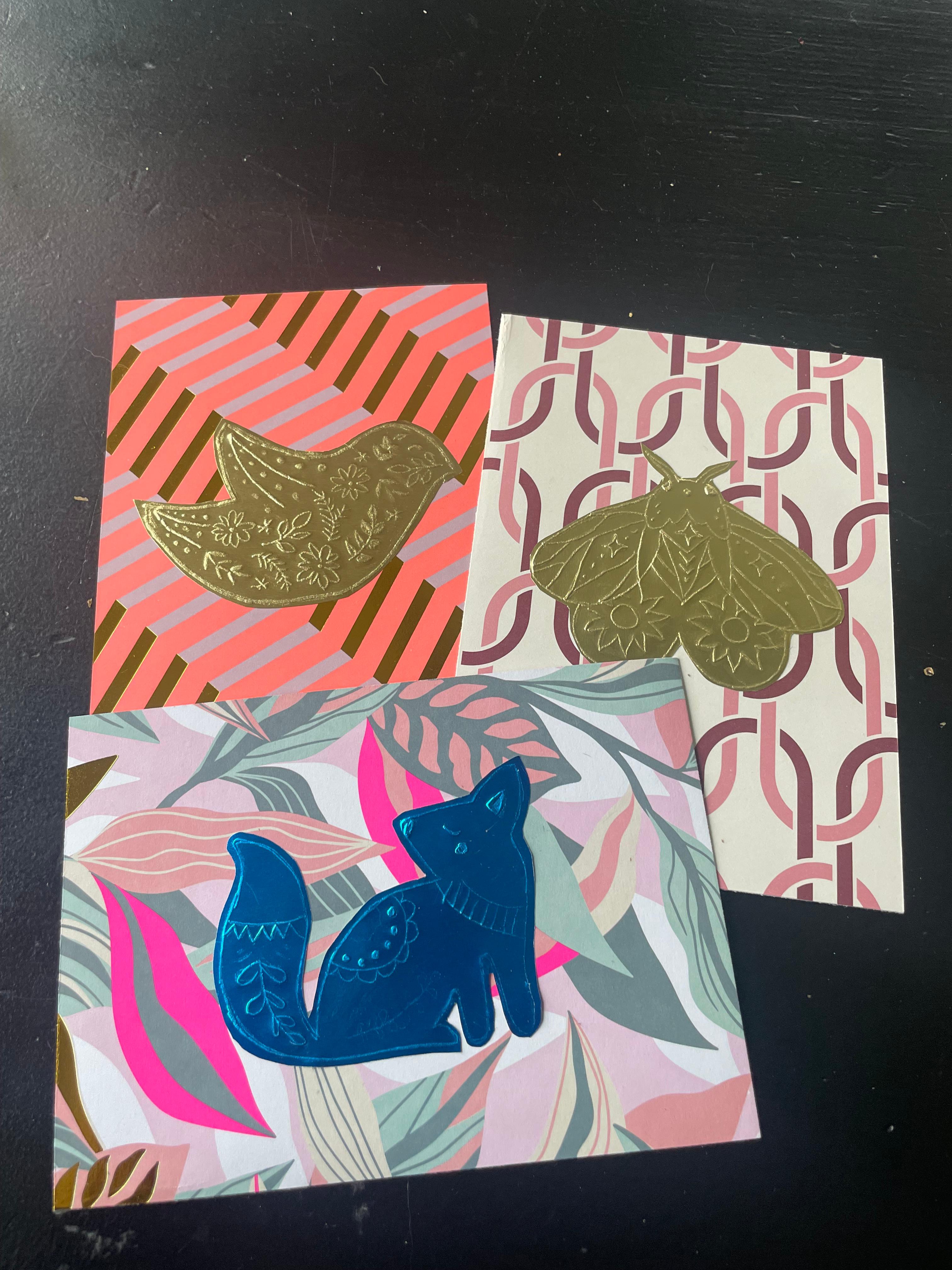 Je krijgt een vel metaalfolie om jouw ontwerp op te creëren, en daarnaast mag je drie kaarten uitzoeken waarop je jouw gouden kunstwerkjes kunt plakken. Zo ga je naar huis met een prachtig setje zelfgemaakte kaarten, perfect om cadeau te doen of zelf te bewaren.