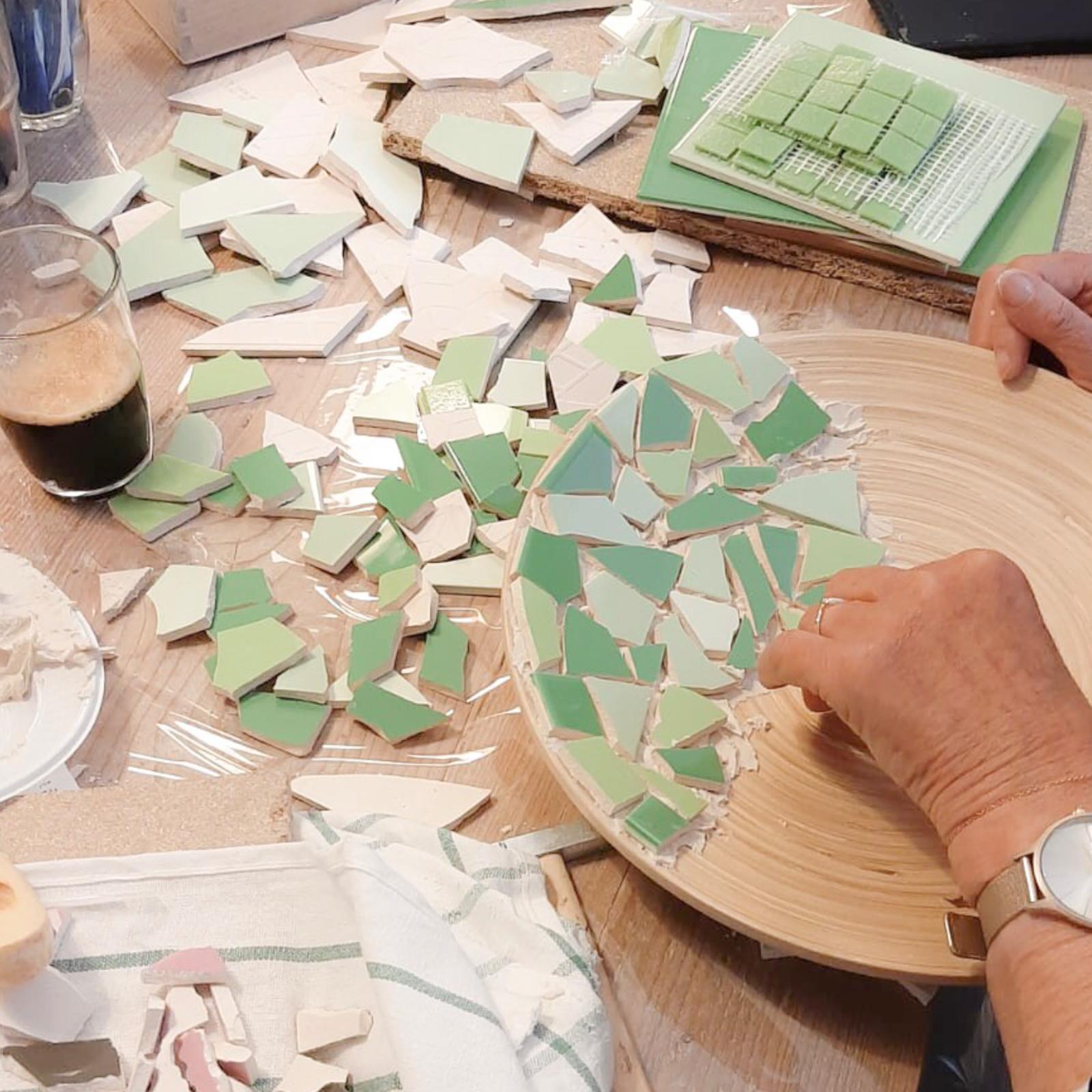 Je maakt individueel een schaal om mee naar huis te nemen. Mooi zal het in elk geval worden! Je gaat werken met tegels in verschillende hippe kleuren en maakt je eigen unieke mozaïek kunstwerk.