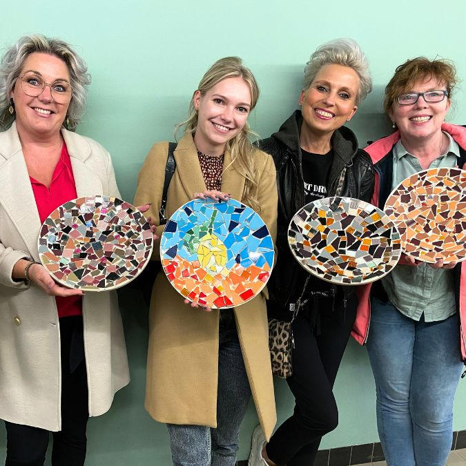 Tijdens deze creatieve Mozaïek workshop in Veendam leer je stap-voor-stap hoe het mozaïeken werkt. Inclusief het kapot slaan van de tegels om er scherven van te maken! Als er nog ergens negatieve emoties zitten sla je die er in een paar minuten uit, om vervolgens prachtige schervenkunst te maken.