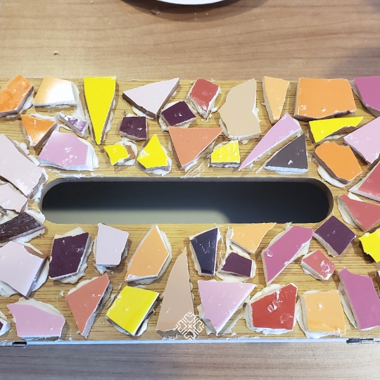 Je kunstwerk kan vanuit een eigen tekening ontstaan of door de tegeldelen willekeurig te plakken. Ik leer je hoe je dat doet.
