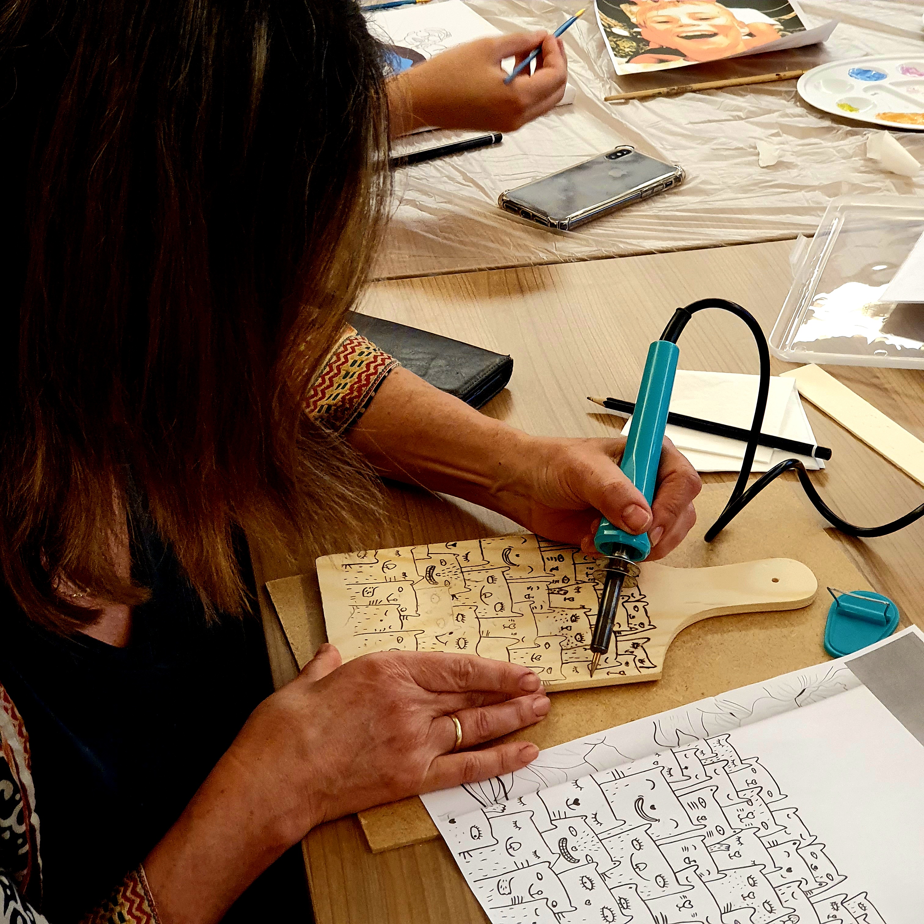 - Hout branden: Met een houtbrander breng je je ontwerp tot leven. Je leert hoe je lijnen, contrast en details aanbrengt en krijgt tips voor een mooi resultaat.