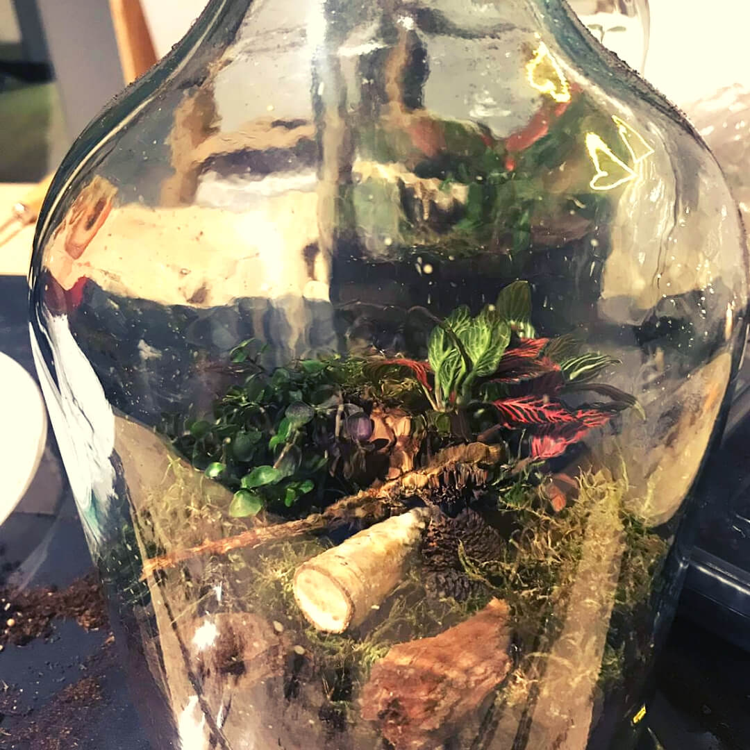 Dit fenomeen zie je steeds vaker voorbij komen op Instagram en Pinterest. In de fles wordt door middel van een specifieke samenstelling van onder andere verschillende plantjes, potgrond, grint en decoratiematerialen een compleet ecosysteem gecreëerd in een afgesloten pot of fles. Hierdoor hebben de plantjes geen onderhoud en water nodig. Jij kunt dus met een gerust hart op vakantie gaan zonder oppas voor de plantjes.
