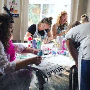 Het is mogelijk om de tas na gebruik te wassen omdat we deze tijdens de workshop fixeren.Super leuk om te doen voor een verjaardag of vrijgezellenfeest en zeker ook geschikt voor een middag creatief met collega's. Aan het einde heeft iedereen een mooi en ook nog eens nuttig gebruiksvoorwerp.