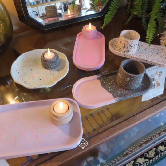 We beginnen met een introductie van het materiaal en de uitleg van de Terrazzo techniek. Vervolgens ga je zelf aan de slag en maak je een aantal prachtige Terrazzo items. Geen enkel Terrazzo item is hetzelfde! Je creëert tijdens de workshop 2 uniek items geheel in jouw eigen stijl. Kies een mal die jij tof vindt, maak een eigen kleurcombinatie of meng de kleuren helemaal zelf! Het is echt zo leuk om te doen!