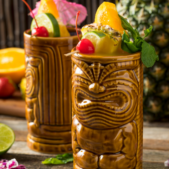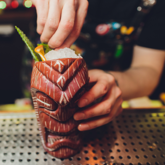 Bij onze workshop nemen we je mee naar de fascinerende wereld van Tiki cocktails. Maar let op, dit is geen gewone cocktail workshop. Nee, wij willen je échte kennis bijbrengen over deze bijzondere cocktails. Tiki cocktails staan bekend om hun uitbundige garnituren en over-the-top presentaties. Denk aan fruitige creaties met soms 7 of meer ingrediënten. More is more! Hollywood heeft ervoor gezorgd dat deze cocktails synoniem zijn geworden aan 'vakantie', compleet met Hawaï shirts en hilarische namen zoals The Zombie.