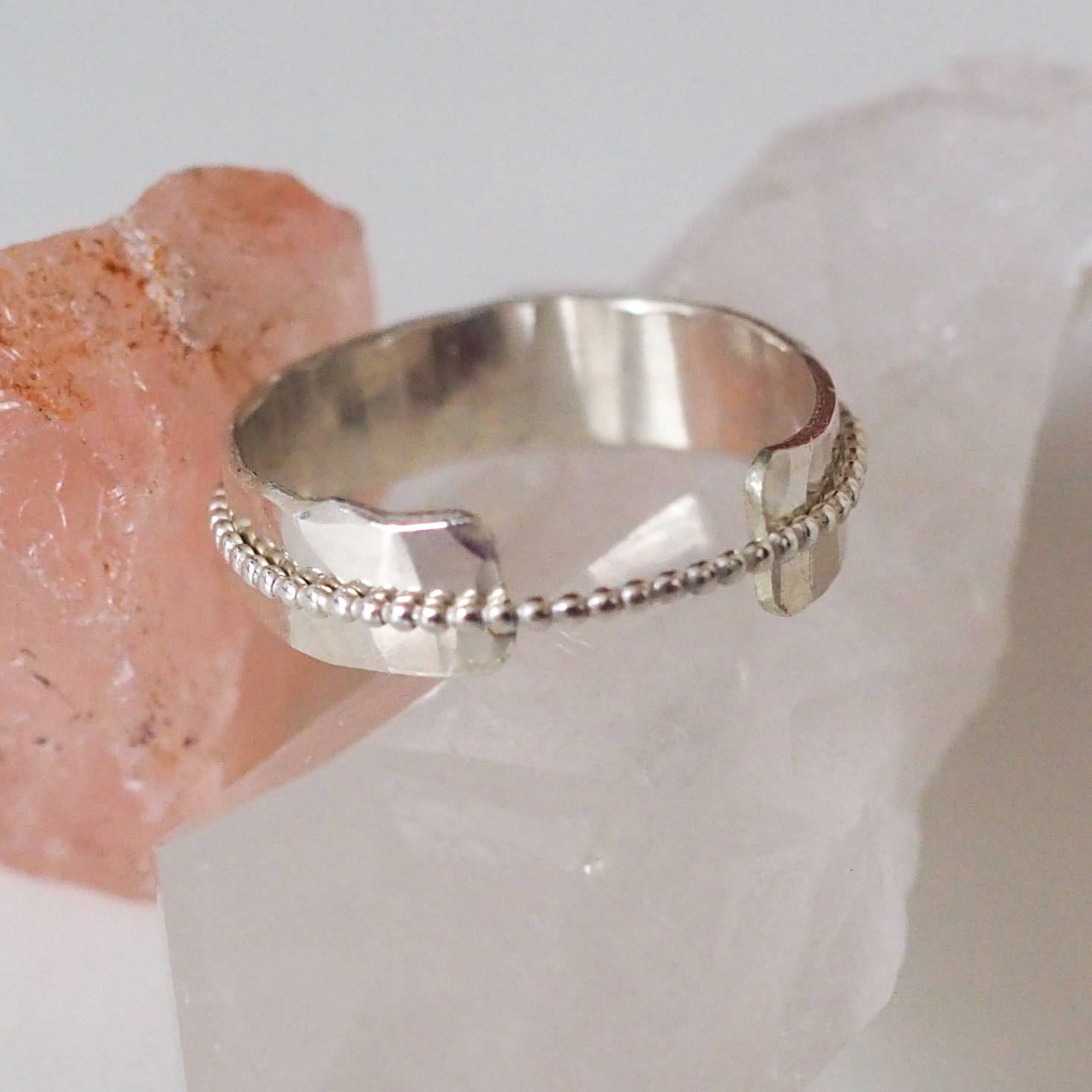 Je kunt kiezen uit één ring met verschillende uitwerkingen. Zo kun je gaan voor een ring met rond draad, bolletjes draad of rmessing draad. Ook heb je keuze in de afwerking van de ring door deze bijvoorbeeld te hameren of glad te houden. De keuze is dus helemaal aan jou!