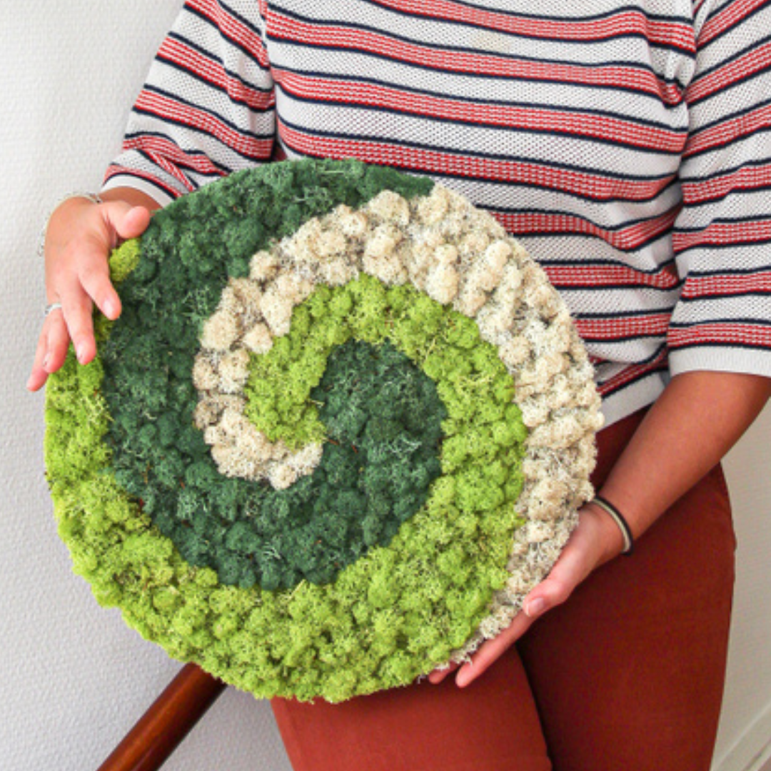 Tijdens de workshop moswand maken creëer je je eigen ronde mosschilderij van 40 centimeter doorsnee, precies naar jouw eigen design. Je leert over verschillende soorten en kleuren mos en meer elementen die je kan gebruiken zoals elvenbankjes, takken en andere natuurlijke materialen.