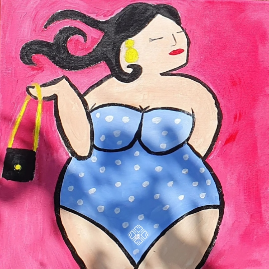 De dikke dames staan bekend om hun kleurrijke outfits, brede glimlach en hun liefde voor gebakjes en wijntjes. De humoristische stijl maakt een schilderij met deze dames een echte blikvanger.