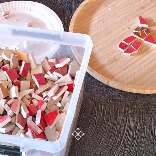 Je kunstwerk kan vanuit een eigen tekening ontstaan of door de tegeldelen willekeurig te plakken. Ik leer je hoe je dat doet.