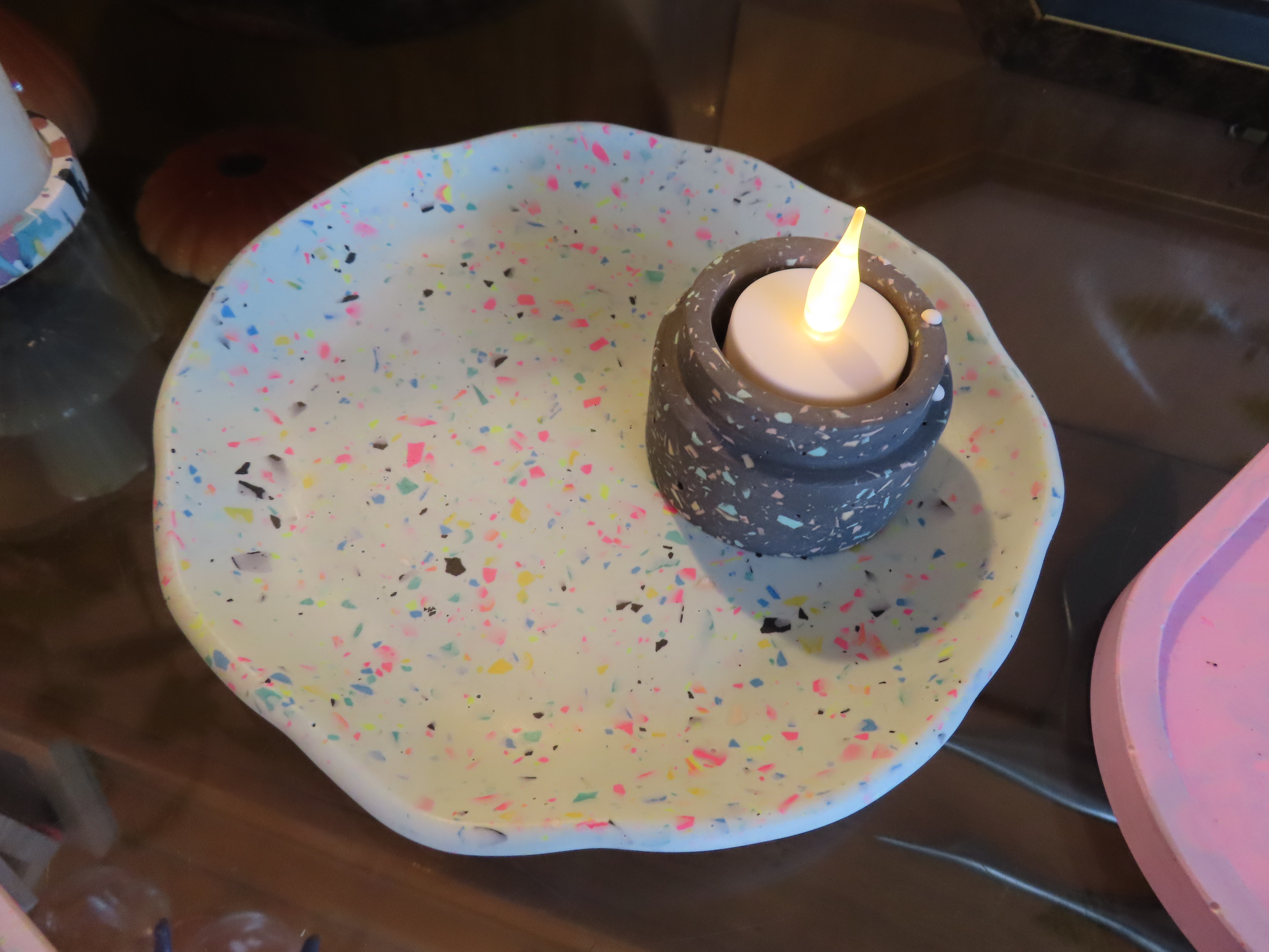 Tijdens deze workshop maak je twee stijlvolle woonitems – zoals een schaal plus bloempot of kandelaar – met de populaire Terrazzo techniek. We werken met Jesmonite, een duurzaam gipscomposiet waarmee je de kenmerkende look van Italiaanse Terrazzo tegels creëert.