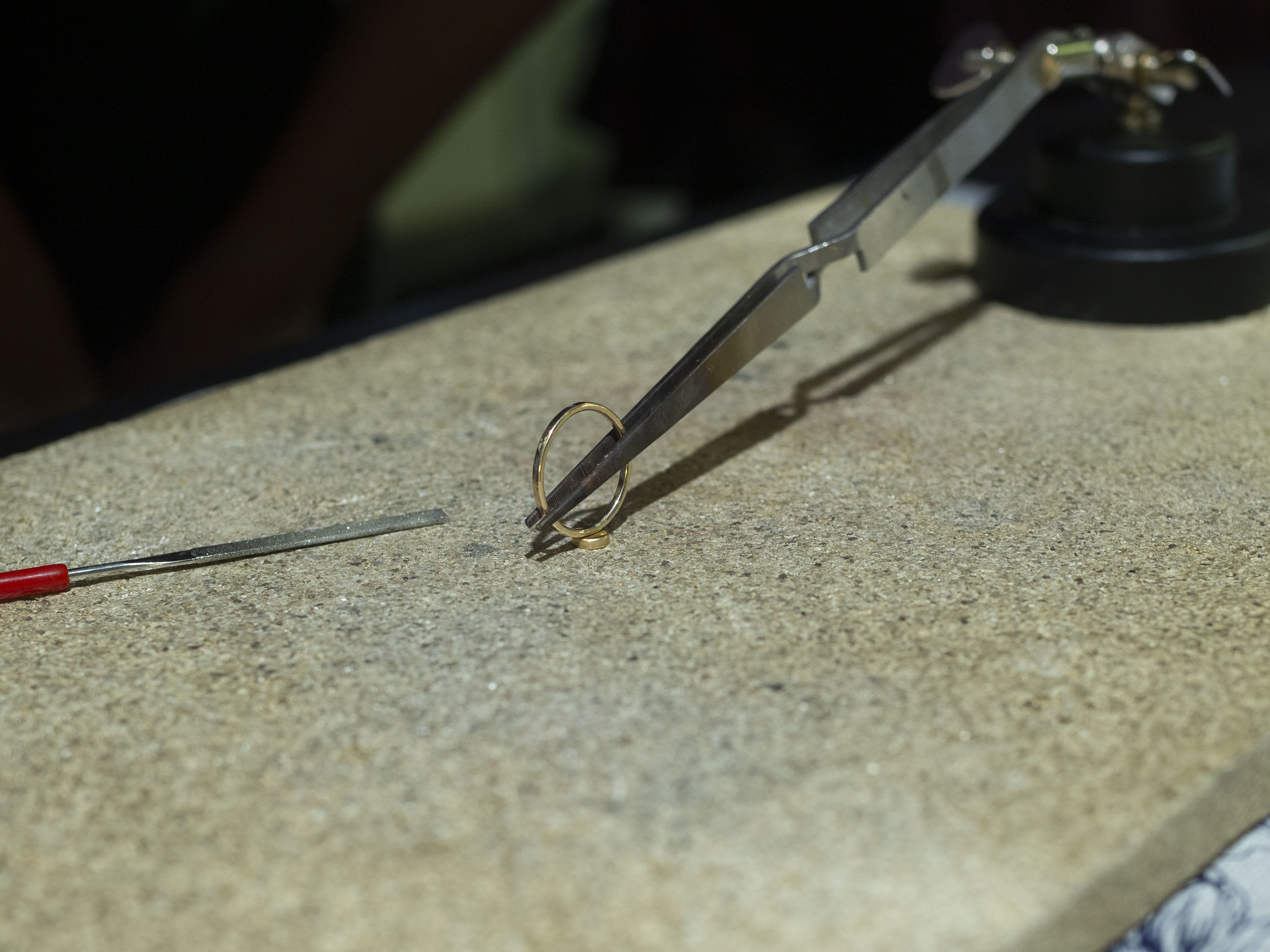 In de workshop is het ook mogelijk om tegen een meerpijs te kiezen om gold filled ringen te maken.