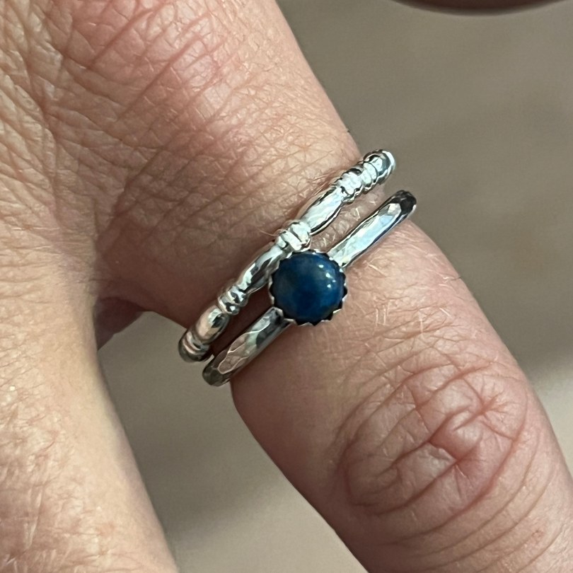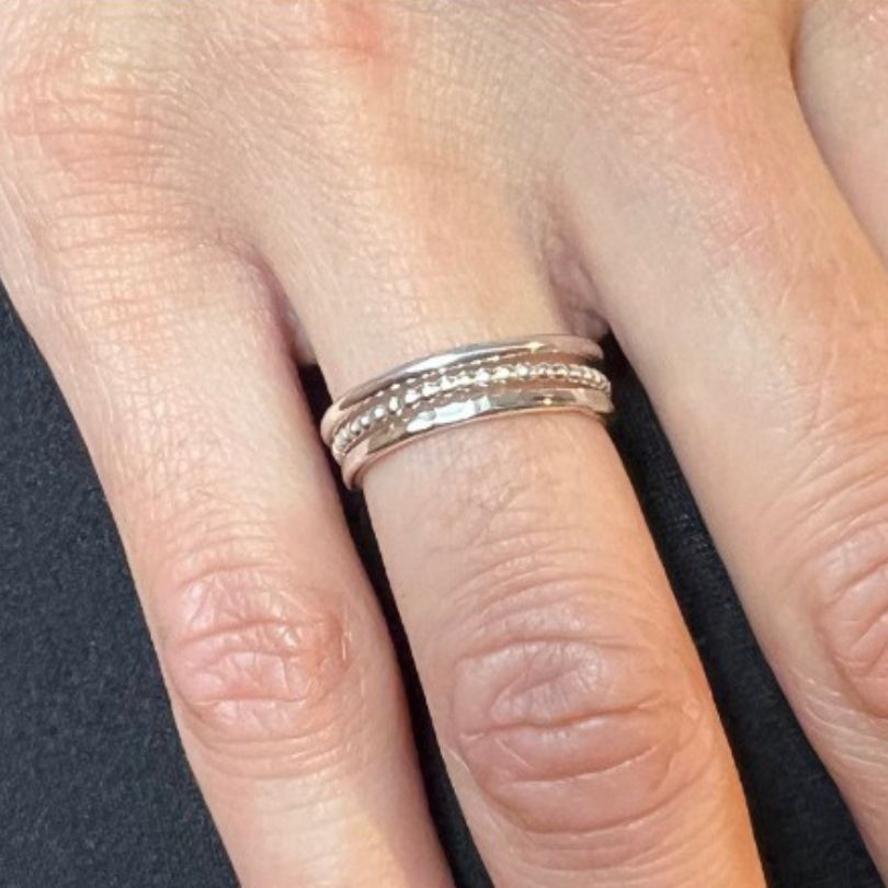Voor de ringen kun je kiezen uit verschillende soorten ringen. Zo kun je gaan voor een ring van bolletjes draad, rond draad of eierdraad. Ook heb je keuze uit de afwerking van de ringen door ze bijvoorbeeld te hameren. Laat je inspireren door de mogelijkheden van zilveren sieraden smeden.
