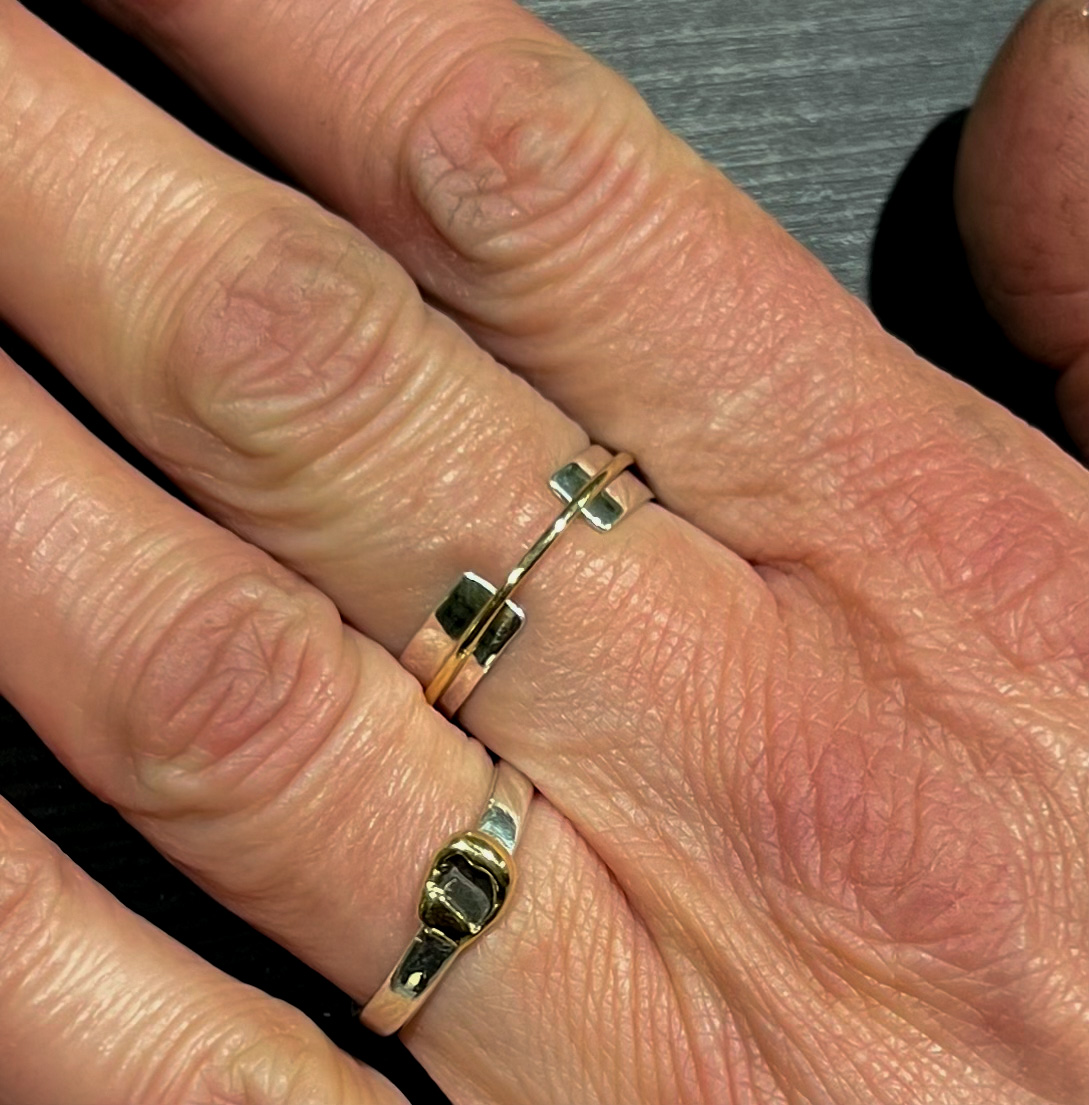 Je kunt kiezen uit 1 ring met verschillende uitwerkingen. Zo kun je gaan voor een ring met rond draad, bolletjes draad of rmessing draad. Ook heb je keuze in de afwerking van de ring door deze bijvoorbeeld te hameren of glad te houden. De keuze is dus helemaal aan jou!